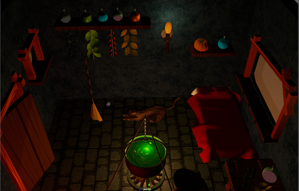 I like playing with atmospheres so my assignment was to add lighting, make shelves, potion flasks and ingredients for the witch. I also added the broom and textures to the room and put the whole room together in the end. It was a fun project and I learned a lot.
