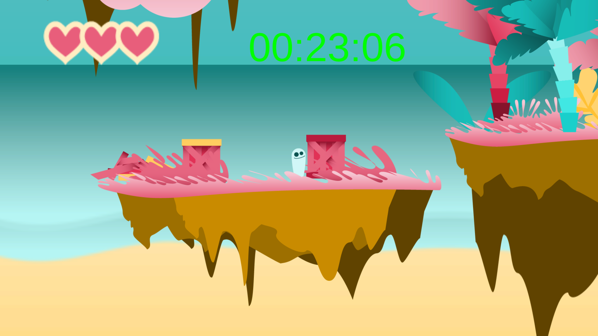 Speed run level with a timer, locally saved high score, collectable system, boxes adding or freezing time functionality, story and its scrolling screen, jingle, heart system, ect.